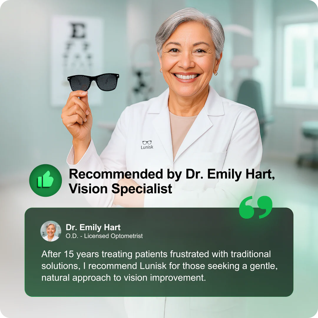 I recommend Lunisk to patients looking to reduce dependency on prescription lenses in a safe, cost-effective manner.